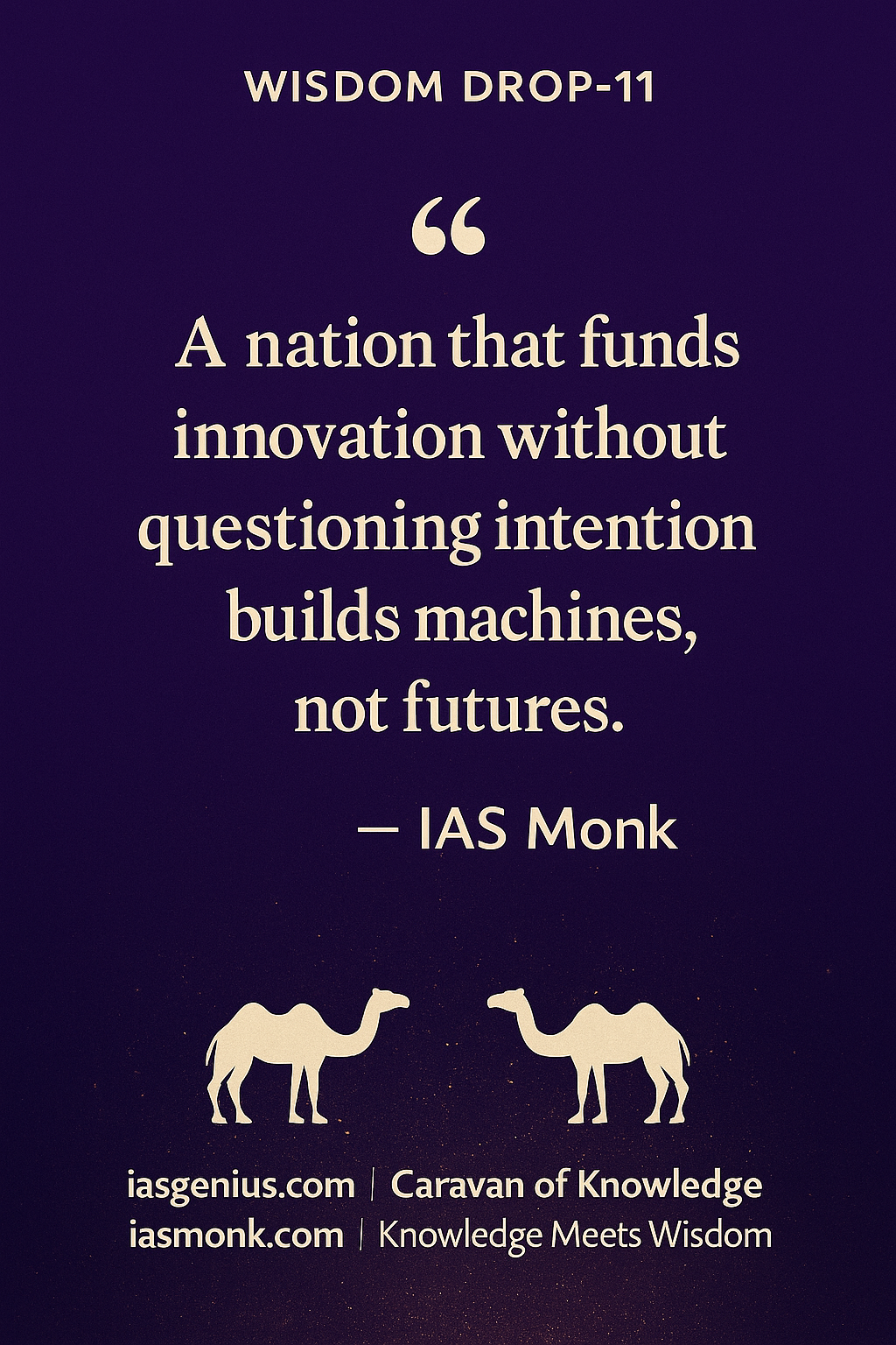 🌌Wisdom Drop-11 : Philosophical Reflections : ON Knowledge Drops :“A nation that funds innovation without questioning intention builds machines, not futures.” — IAS Monk