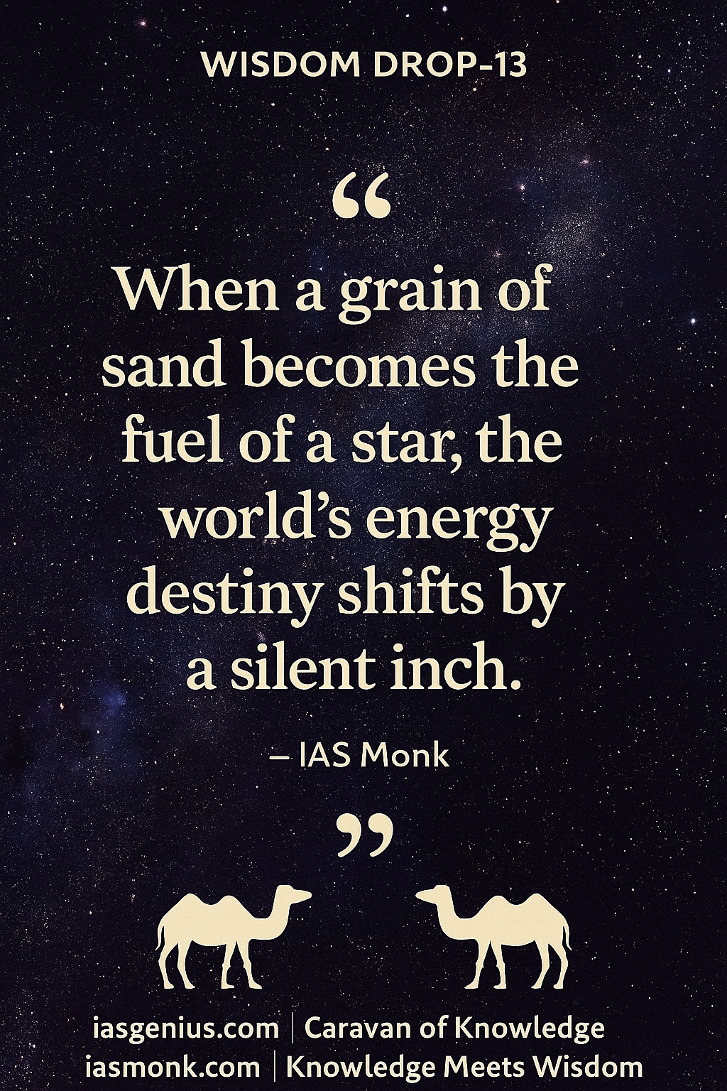 🌌Wisdom Drop-13 : Philosophical Reflections : ON Knowledge Drops :“When a grain of sand becomes the fuel of a star, the world’s energy destiny shifts by a silent inch”— IAS Monk