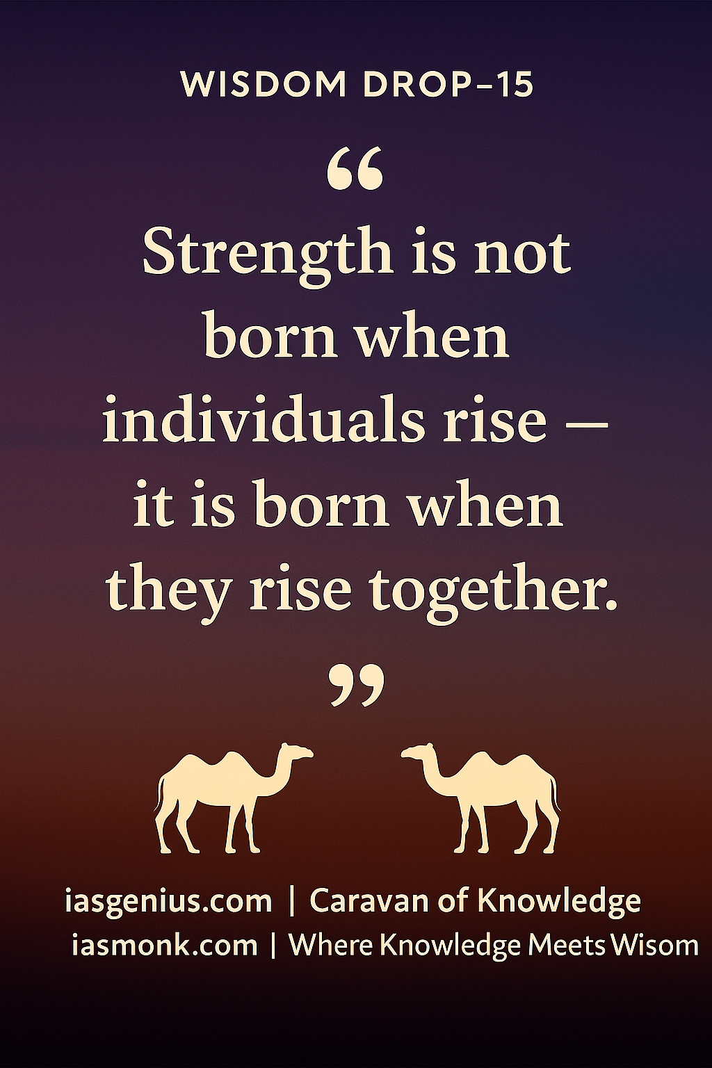 🌑Wisdom Drop-15 : Philosophical Reflections : ON Knowledge Drops :“Strength is not born when individuals rise — it is born when they rise together.” — IAS Monk