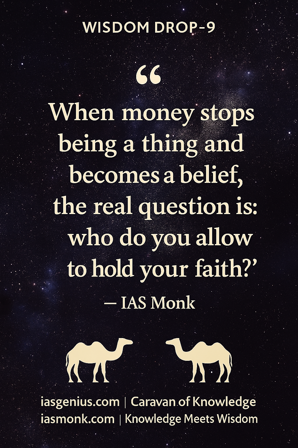 🌌Wisdom Drop-9 : Philosophical Reflections : ON Knowledge Drops :“When money stops being a thing and becomes a belief, the real question is: who do you allow to hold your faith?” — IAS Monk